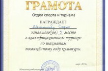 Поздравляем Мельникову Софью, занявшую 3 место в квалификационном турнире по шахматам, посвященному году культуры.