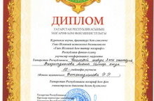 Поздравляем Бильданову А., ученицу 7 кл., занявшую 3 место в фестивале, проводимом в рамках мероприятий, посвященных Году культуры в РТ и РФ и Дню родного языка среди учащихся школ Чистопольского муниципального района РТ. (руководитель Вагизова Л.Р.).