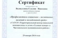 29.01.2014г. ГАУСО «Территориальный центр социальной помощи семье и детям «Салават купере» организовали круглый стол «Профилактика социально-негативных явлений в молодежной среде», где зам. директора по ВР Валиуллина Г.Н. приняла активное участие.