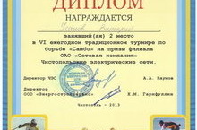 Поздравляем Усанова Виталия, занявшего 2 место в VI ежегодном традиционном турнире по борьбе «Самбо» на призы филиала ОАО «Сетевая компания» Чистопольские электрические сети.