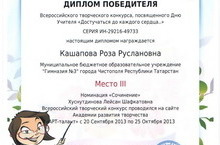 Муниципальное бюджетное общеобразовательное учреждение «Гимназия №3» Чистопольского муниципального района Республики Татарстан / Татарстан Республикасы Чистай муниципаль районы "3 нче гимназия" муниципаль бюджет гомуми белем учреждениесе