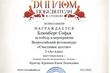 Учащиеся 2а класса (учитель Куракина Е.Л.) принимали участие во всероссийской дистанционной олимпиаде. Мартынов Алексей занял 1 место, Ситдикова Эльза - 2 место, Багманов Руслан -3 место.