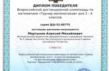 Итоги всероссийской дистанционной олимпиады по математике «Турнир математиков» для 2-4 классов 14.11.2013