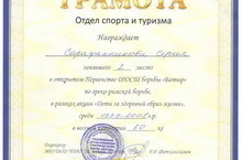 В открытом Первенстве ДЮСШ борьбы «Батыр» по греко-римской борьбе среди 1999-2001 г.р. в весовой категории 50 кг ученик 8а кл. Сарафанников Сергей занял II место.