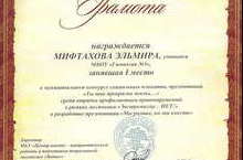 В муниципальном конкурсе презентаций «Ты так прекрасна жизнь…» Мифтахова Эльмира заняла 1 место.