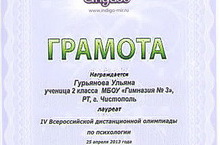 Лауреатом олимпиады стала Гурьянова Ульяна, ученица 3Б кл. ( куратор: Шумилова Т.М.)
