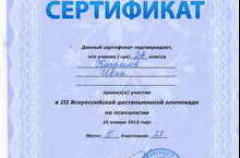 Капралов Иван, ученик 2А класса принял участие в III Всероссийской дистанционной олимпиаде по психологии (куратор: Шумилова Т.М.).