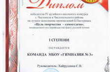 Команда МБОУ «Гимназия №3» заняла 1 место (руководитель: Хайруллина С.В.).