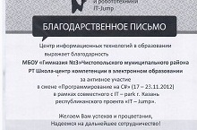 Центр информационных технологий в образовании выражает благодарность нашей гимназии