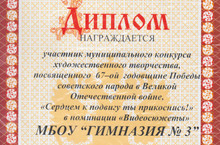 Ребята патриотического кружка «Азимут» (руководитель: Левин О.М.) приняли участие в муниципальном конкурсе художественного творчества, посвященного 67-ой годовщине Победы советского народа в Великой Отечественной войне «Сердцем к подвигу ты прикоснись!»