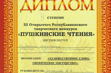 III Открытый творческий конкурс «Пушкинские чтения» 04.05.2012