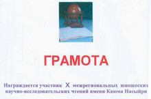 Юношеские научно - исследовательские чтения имени Каюма Насыйри 14.04.2012
