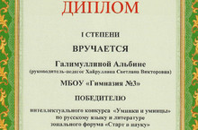 В Чистопольском педагогическом колледже прошел зональный форум «Старт в науку». Учащиеся нашей гимназии приняли активное участие в интеллектуальном конкурсе «Умники и умницы» по русскому языку и литературе.