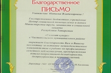 10 февраля 2012 года состоялось итоговое совещание ГБУ ЦСПСиД «Салават купере» в Чистопольском муниципальном районе, на котором в торжественной обстановке по итогам 2011 года социальному педагогу МБОУ «Гимназия №3» Беспаловой Н. В. и коллективу было вручено благодарственное письмо за активное межведомственное взаимодействие в работе по профилактике правонарушений и предупреждению безнадзорности и беспризорности.