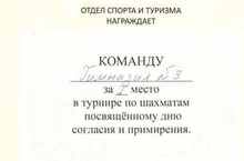 В дни осенних каникул на базе МОУ ДОД «Дворец творчества детей и молодежи» прошёл турнир по шахматам, посвященный Дню согласия и примирения. Команда учащихся МБОУ «Гимназия №3» заняла 1 место. Поздравляем ребят с победой!