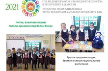Татарстанда Туган телләр һәм Халыклар бердәмлеге елы уңаеннан милли тәрбия бирү сыйныфында “Читек һәм алъяпкычларны милли орнаментлар белән бизәү” исемле дәрес үткәрелде. Әлеге дәрестә укучылар үзләре сайлап алган киемнәргә милли бизәкләр төшерделәр.