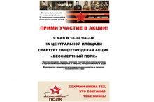 9 мая проводится АКЦИЯ "БЕССМЕРТНЫЙ ПОЛК"