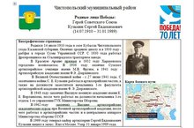 В списке победителей республиканской историко-патриотической акции «Родные лица Победы», посвященной 70-летию Победы - ГБОУ «Чистопольская кадетская школа-интернат имени Героя Советского Союза Кузьмина С.Е.» (автор проекта педагог дополнительного образования Светлана Скучаева). Выставочный проект был посвящен биографии Героя Советского Союза Сергея Кузьмина. По итогам конкурса школа награждена грантом в размере 90 тысяч рублей. Поздравляем! -