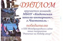 22 февраля команда нашей школы под руководством Тихонова В.В. и Куличкова А.А. вернулась с XIII Международного слета юных патриотов "Равнение на Победу -2015!"