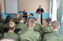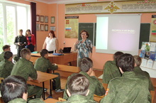 12 сентября с учащимися побеседовали заместитель Главы ЧМР Ксенофонтов М.В. и координатор организации "Молодая гвардия" Колесников В.