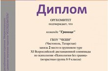 Наши кадеты приняли участие в XI Всероссийской дистанционной олимпиаде по психологии «Психология без границ», которая проводилась Татарстанским республиканским отделением Межрегионального, общественного движения творческих педагогов «ИССЛЕДОВАТЕЛЬ» при научно-методической поддержке Центра повышения квалификации Академии наук Республики Татарстан 18 октября – 21 ноября 2022 г. Олимпиада «Психология без границ» была нацелена на выявление и поддержку творческих способностей обучающихся, формирование умений проведения учебного исследования, популяризацию психологических знаний, а также на развитие интереса учащихся к дальнейшей подготовке в области психологии. Олимпиада состояла из двух туров – личного и командного (группового). В ней приняли участие 2564 обучающихся из 171 населенного пункта России. Наша команда состояла из 6 человек: Волковой Виктории, Шашиной Стефании, Каримовой Зарины, Полутягловой Регины, Наумовой Ангелины и Сорокиной Милены. В итоге – Диплом 2 степени!