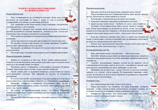 Перед зимними каникулами классные руководители провели беседы и инструктажи о правилах безопасного поведения в зимний период. Повторили правила поведения на льду, правила использования «ватрушек», правила пожарной безопасности и соблюдений ПДД.