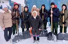 Кадеты помогли очистить двор от снега труженице тыла после продолжительного снегопада.