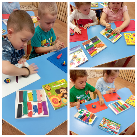 "Занятие по лепки в старшей группе"/"Өлкән группада ябыштыру дәресе".