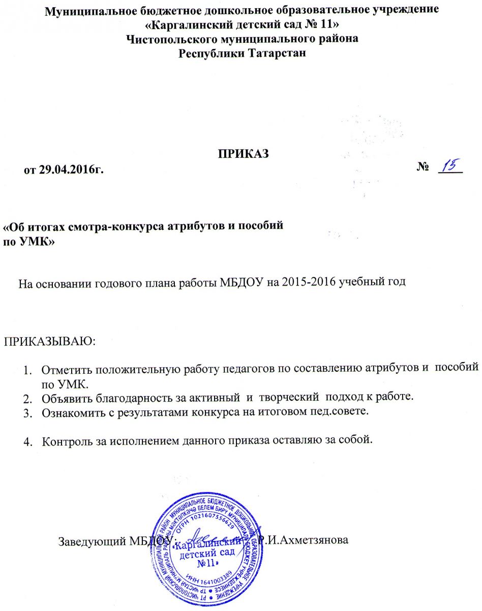 Смотр-конкурс "На лучшую разработку атрибутов и пособия в соответствии с УМК по обучению дошкольников татарскому языку", проводимый с целью оптимизации процесса создания дидактического оснащения педагогического процесса, развивающей предметно-пространственной среды в соответствии с УМК по обучению дошкольников татарскому языку (положение, приказ о проведении, итоги)