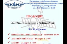 Чистопольский филиал "Восток" Казанского национального исследовательского технического университета им.А.Н. Туполева - КАИ проводит Олимпиады для учащихся 9-11 классов