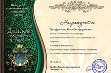 Лутфуллина Рашида Нурулловна, учитель татарского языка и литературы, награждена Дипломом победителя III степени за победу в мероприятии Всероссийского конкурса профессионального мастерства "Я - учитель" в номинации "Методические разработки". Молодец!