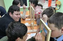 Учитель-дефектолог Фугина Ю.Р. провела с учащимися 1б класса открытый урок по ритмике на тему: "Путешествие в сказку". Целью данного урока было: обогащать музыкальные впечатления детей, создавать радостное настроение, развивать ритмичность движений под музыку, учить ориентироваться в пространстве, способствовать развитию ловкости и внимания. При подготовке к уроку были учтены возрастные и индивидуальные особенности учащихся. Структура урока была выдержана, все этапы соблюдены, распределение времени было рациональным. На занятии использовалась музыка, которая усиливала эмоциональное восприятие. На всех этапах активизировалась познавательная, речевая и двигательная активность детей. На организационном этапе педагог заинтересовала учащихся, они отправились по тропинке, которая вела в деревню, а потом в сказку. На протяжении всего урока дети путешествовали по сказке "Курочка Ряба". Учащиеся танцевали, играли на ложках и колокольчиках, рисовали, классифицировали предметы. Использование наглядных демонстрационных пособий и раздаточного материала позволило достичь более высоких результатов деятельности учащихся. Здоровьесберегающие технологии обеспечивались путем смены видов деятельности, физминуткой в середине урока, благоприятной психологической атмосферой. Урок прошёл на высоком эмоциональном подъеме, все поставленные задачи удалось реализовать.
