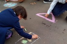 Учащиеся группы продленного дня в рамках акции "Внимание, дети!" рисовали на асфальте знаки дорожного движения.