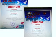 Дипломы Республиканского конкурас творческих работ среди воспитанников, учащихся и педагогических работников образовательных организаций, посвященных 75- й годовщине Победы в Великой Отечественной войне в номинации рисунок "Юбилею Победы посввящается" название работы "Мы верим, что победа бкедет за нами".