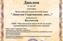 Педагогический коллектив отмечен благодарственным письмом за участие во Всероссийской патриотической акции «Лепестки Георгиевских лент…"