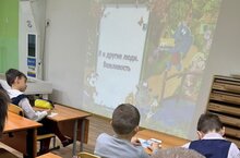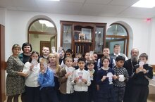 Сегодня под руководством педагогов Фоминой Г. Н., Донеевой Н. Н. и Сибагатовой А. Н. учащиеся 4а и 4б классов посетили храм "Умиление". Педагоги и школьники передали настоятелю храма Рыбочкину Андрею детские книги для воскресной школы.
