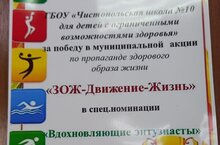 Поздравляем с победой в муниципальной акции по пропаганде здорового образа жизни "ЗОЖ - Движение - Жизнь" в специальной номинации "Вдохновляющие энтузиасты"
