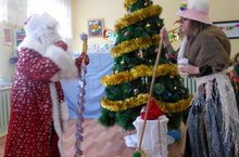 Сегодня ребята и их родители совершили кругосветное путешествие с Дедом Морозом, в поисках внучки Снегурочки, которую похитила Баба Яга. Первой страной оказалась Бразилия, где на зажигательном карнавале станцевали задорную, веселую ламбаду. Затем дети искали Снегурочку на севере, но среди вечных льдов Снегурочку не нашли. Потом оказались в жаркой Африке, где их встретили аборигены. Наконец-то чудо свершилось и Баба Яга подсказала где спрятала Снегурочку - во дворце у Шахерезады. Восточные красавицы обогрели, приютили и танцевать Снегурочку учили. Дети с удовольствием участвовали в новогоднем представлении: водили хороводы, пели песни, танцевали, читали стихи и были очень рады получить подарки от Деда Мороза и Снегурочки.