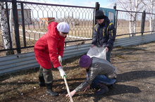 Учащиеся и работники школы приняли участие в субботнике по уборке территории прилегающей к школе
