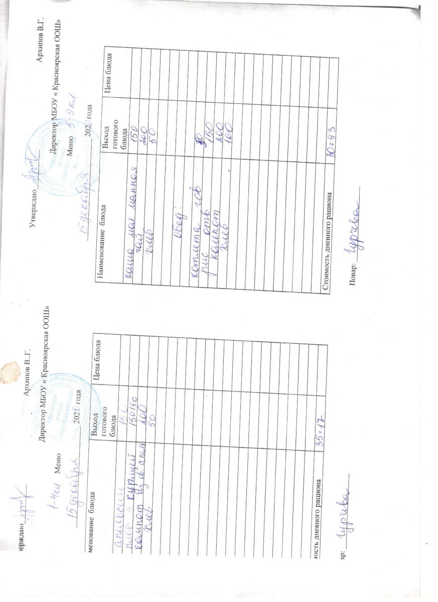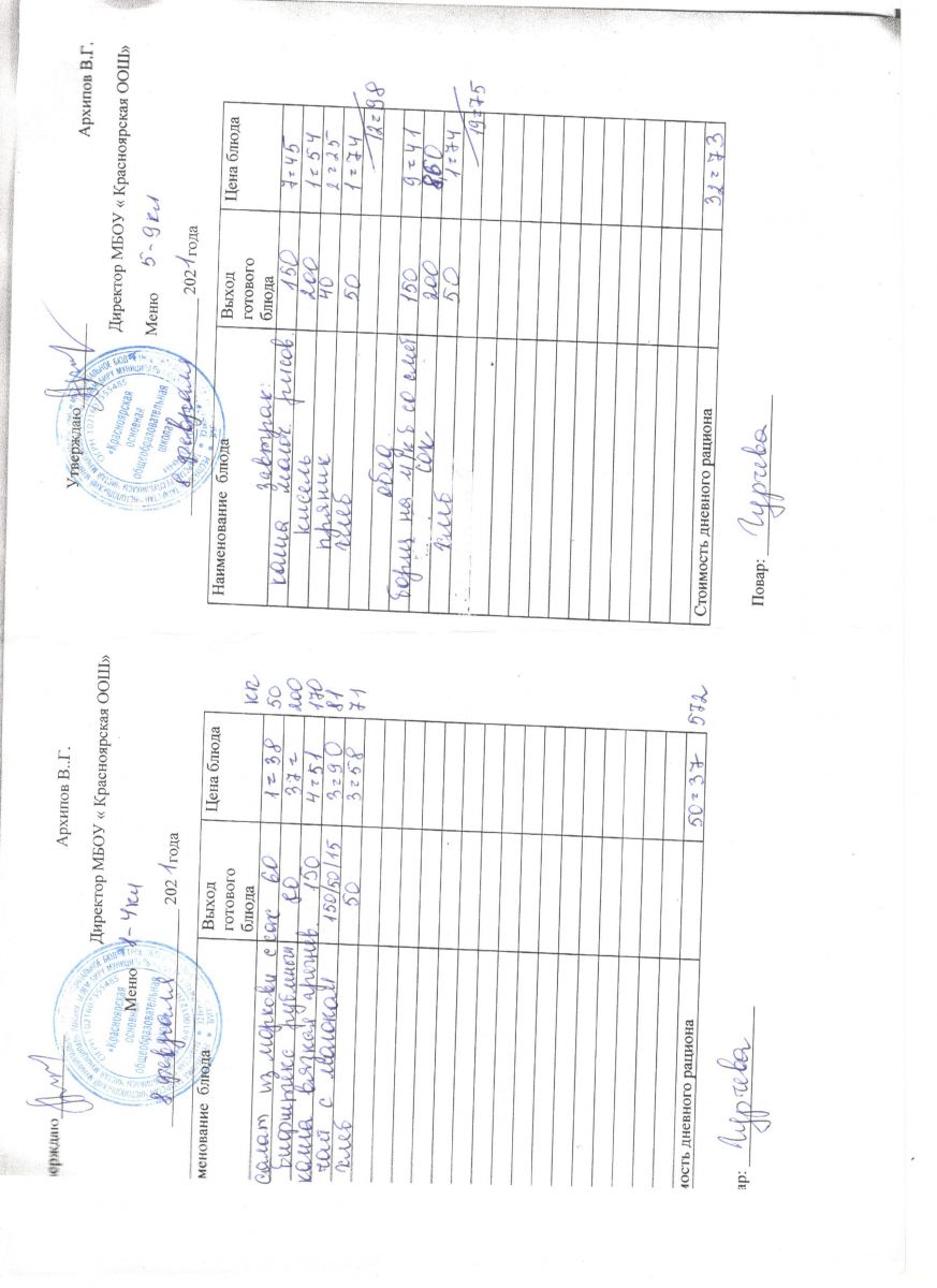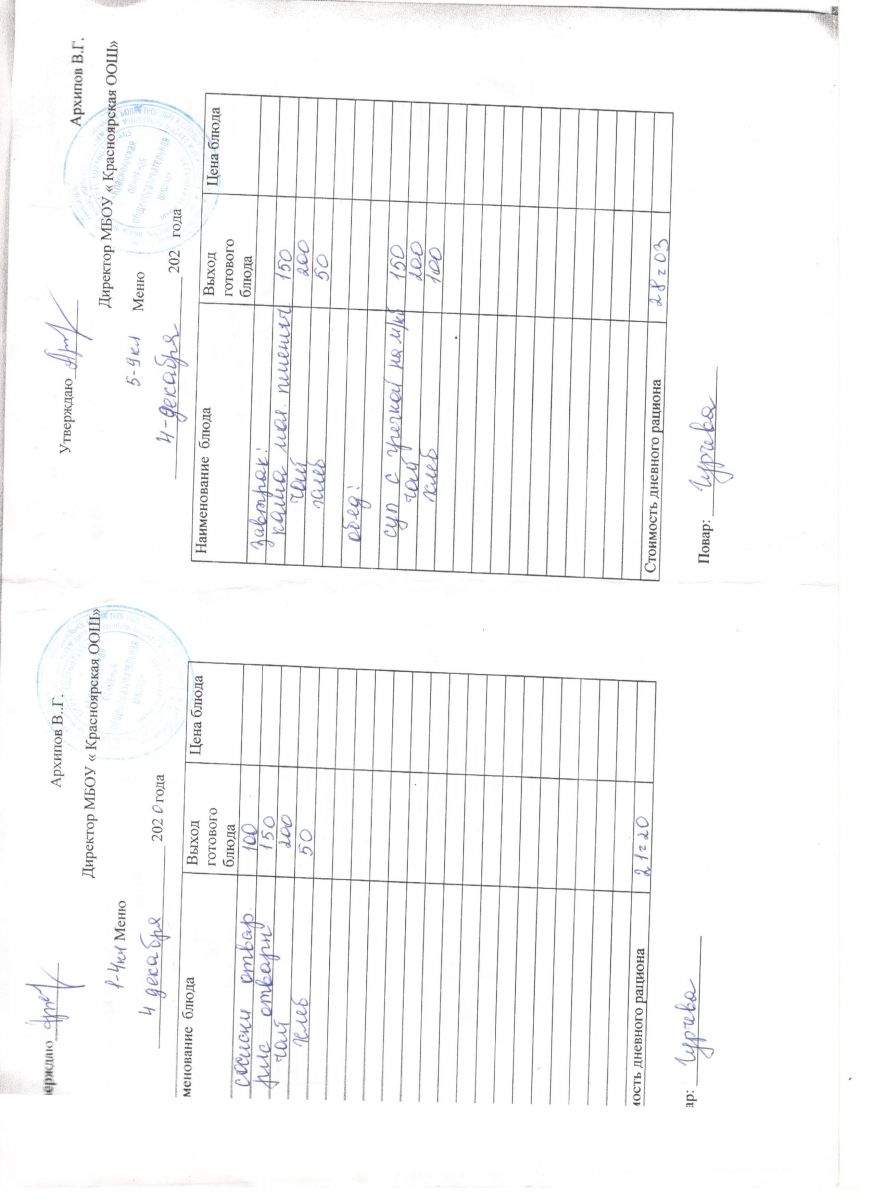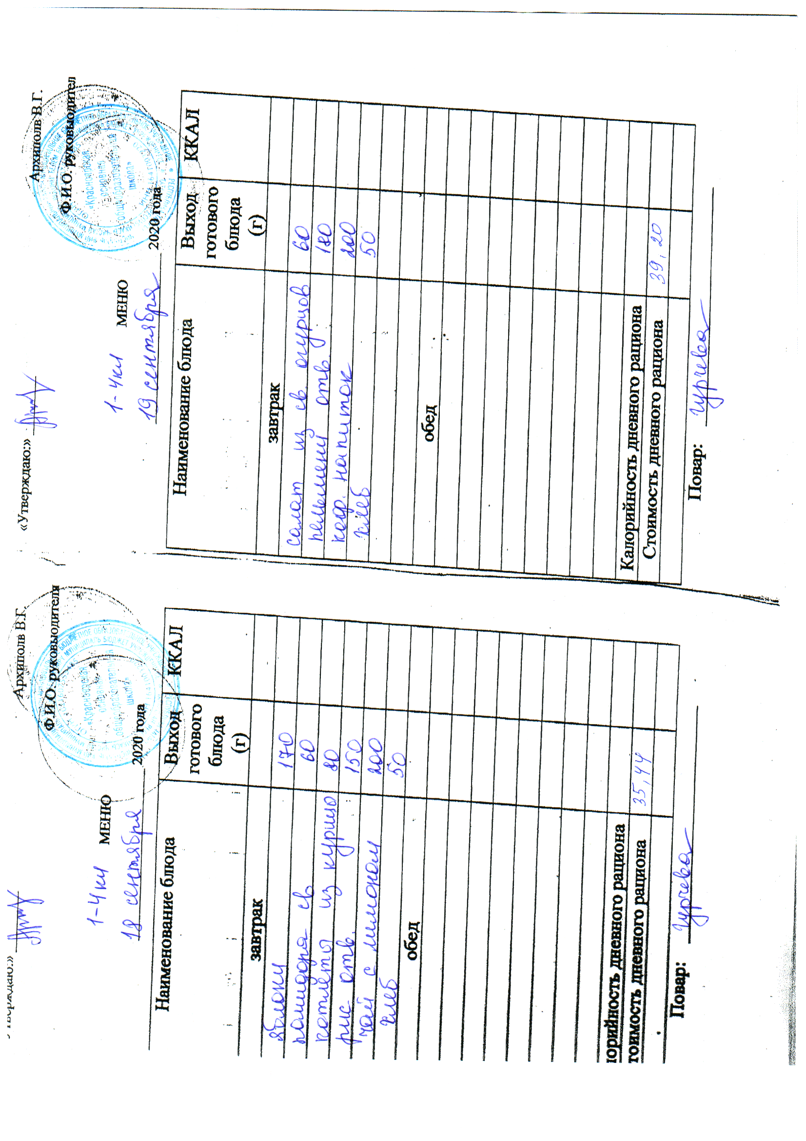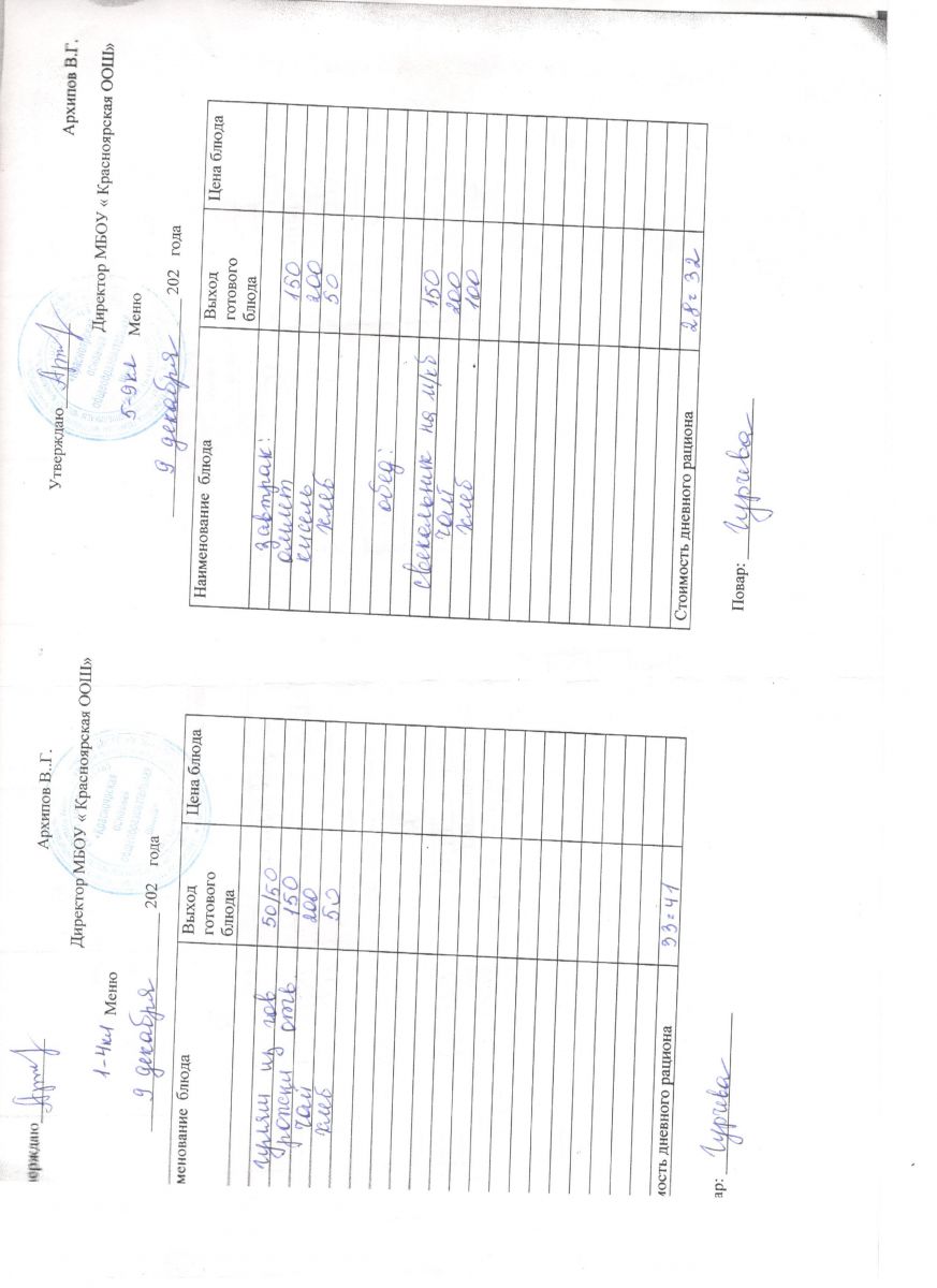 Меню учащихся 1 - 4 классов 1 неделя(зимний сезон) 2 неделя (зимний сезон)