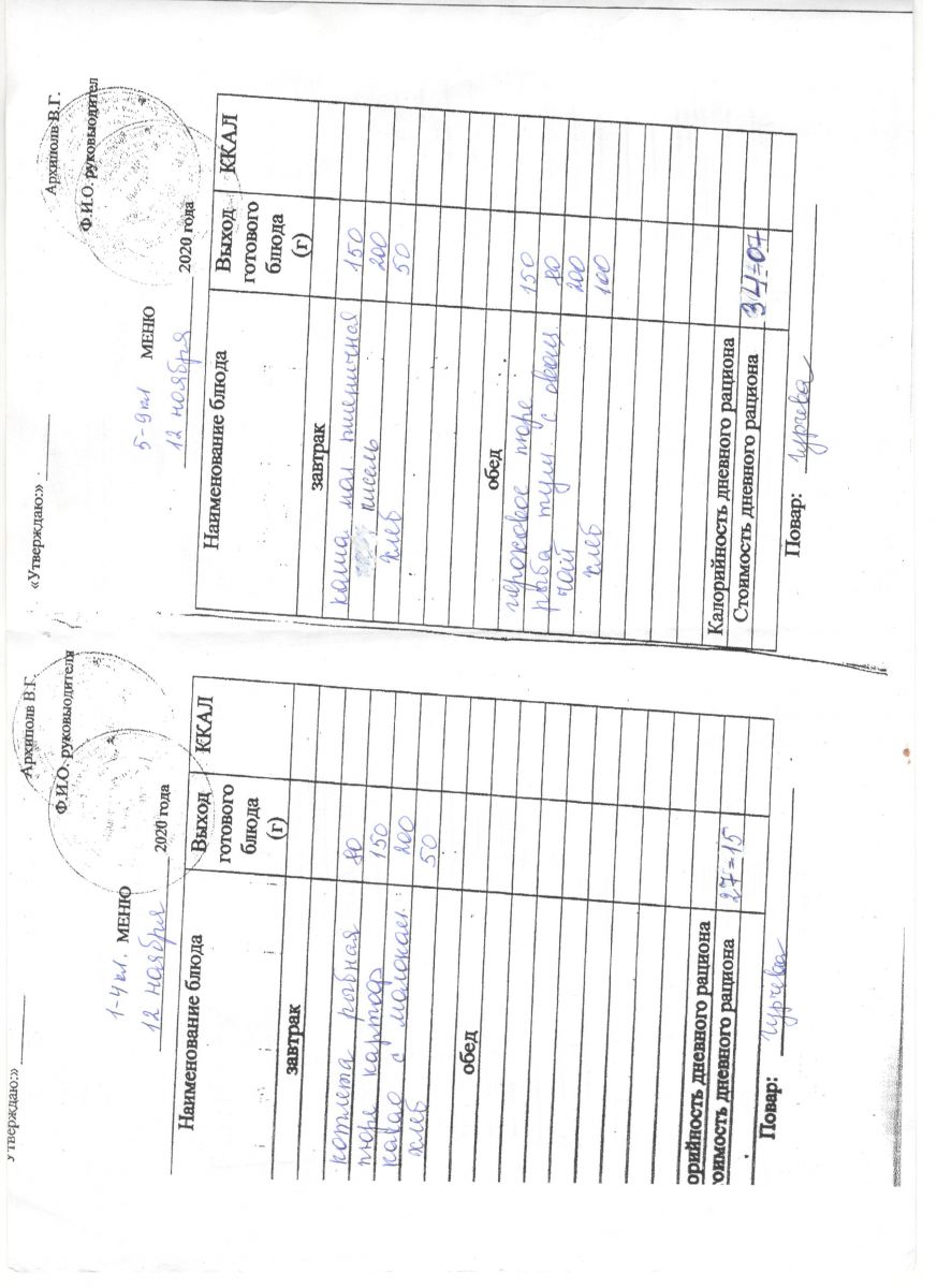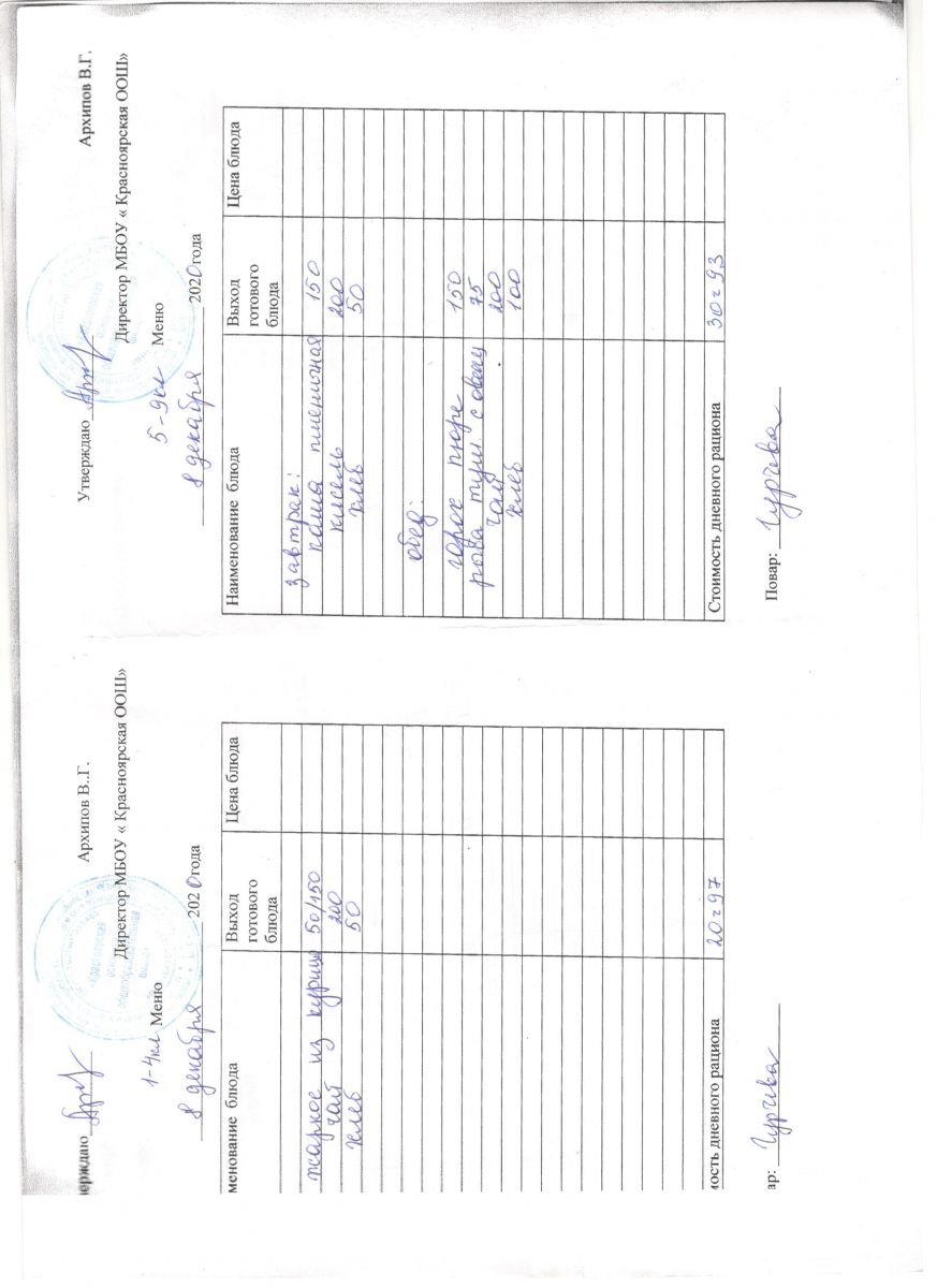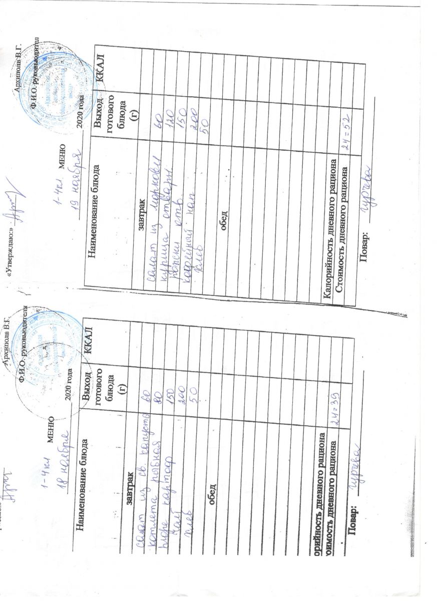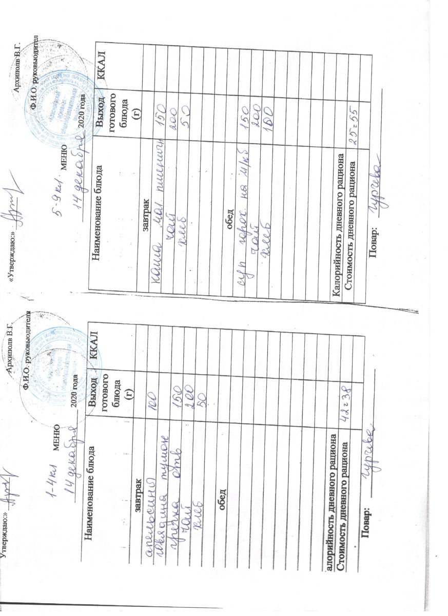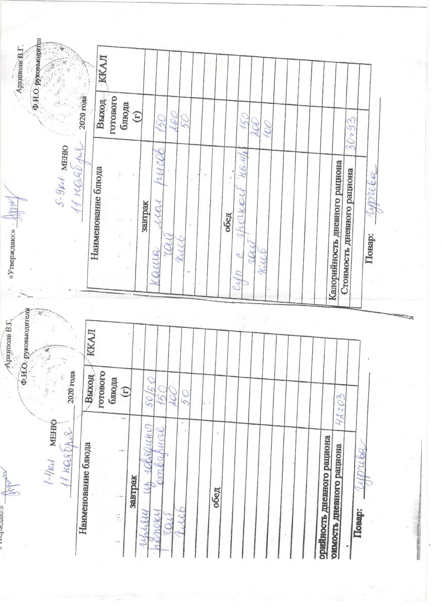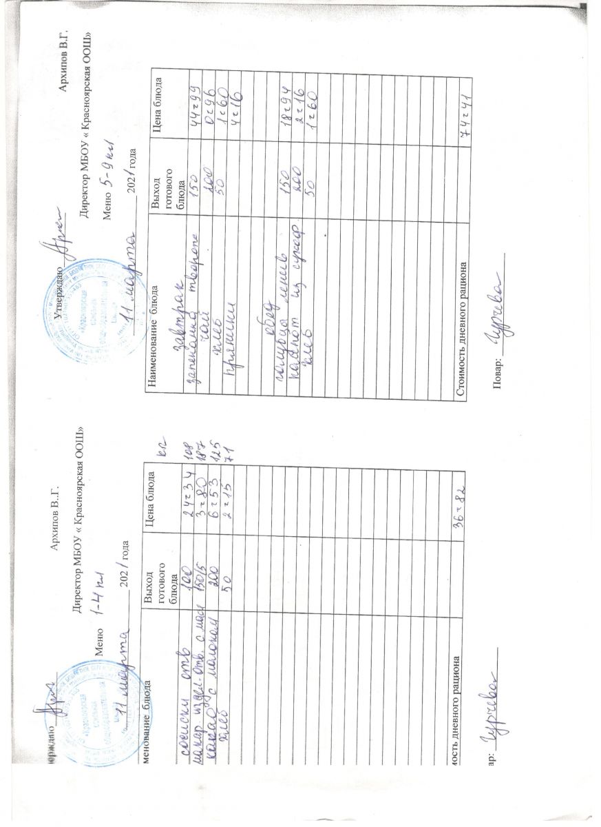 Меню учащихся 1 - 4 классов 1 неделя(зимний сезон) 2 неделя (зимний сезон)