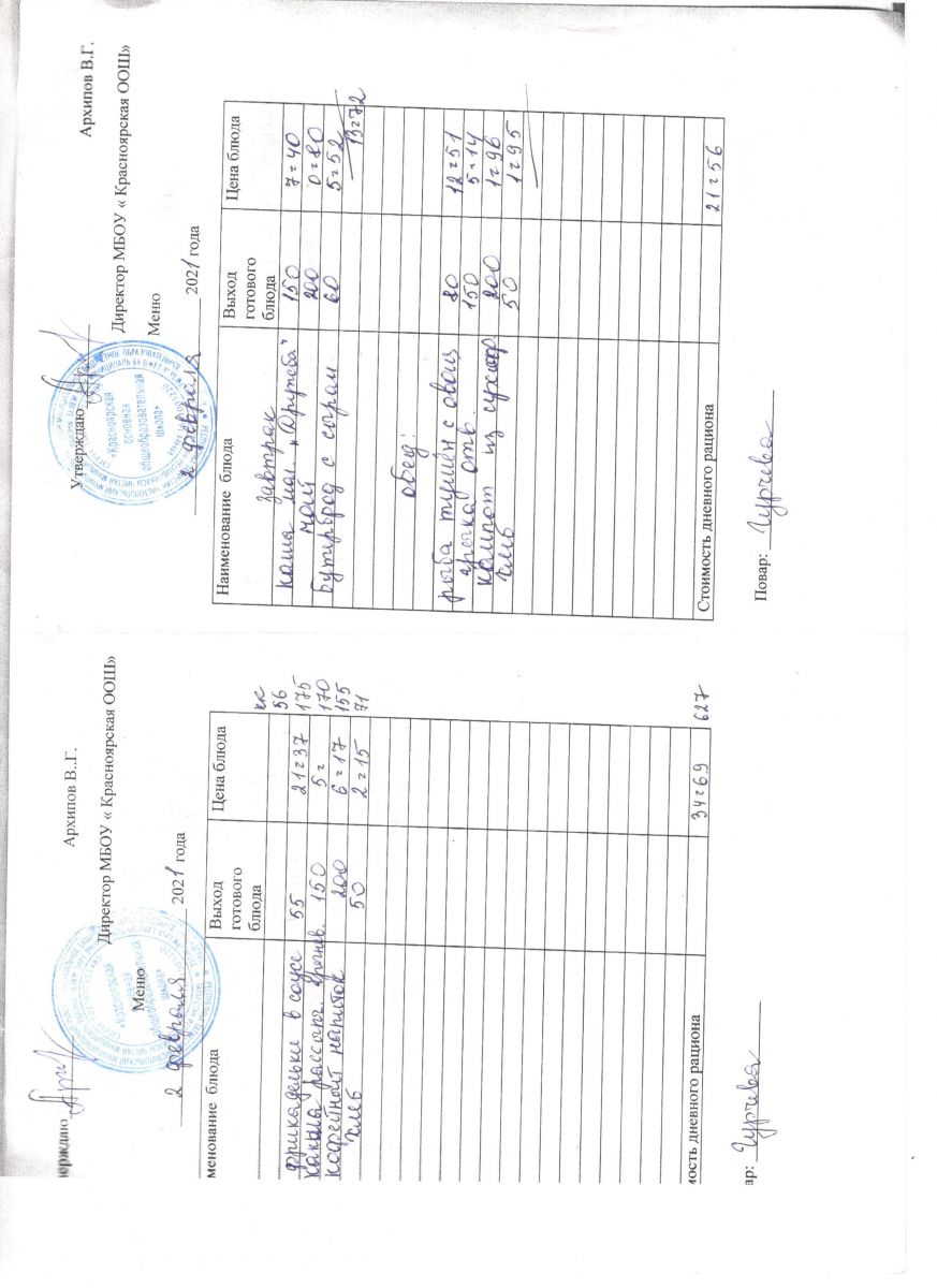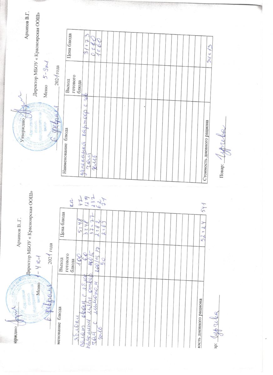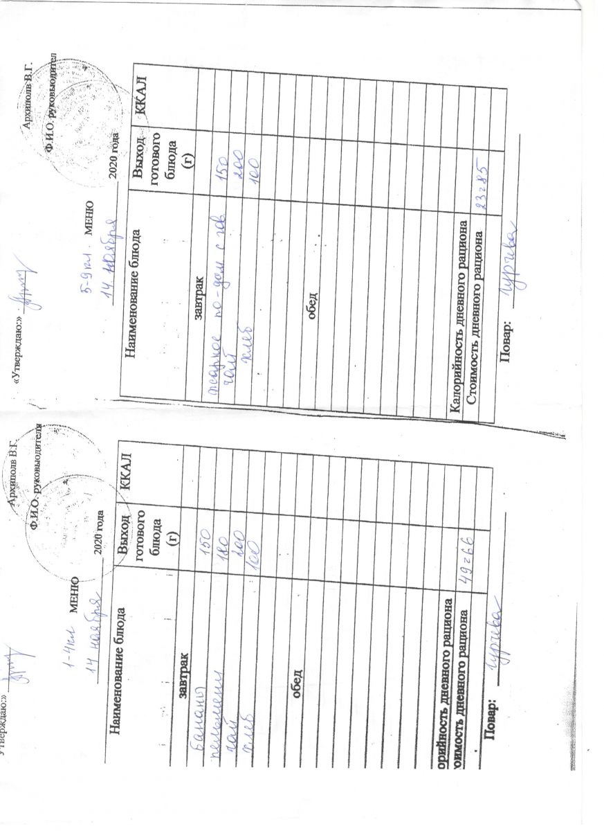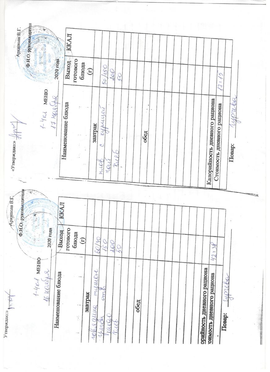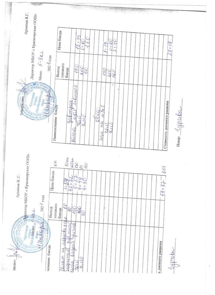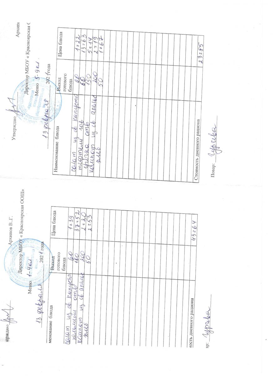 Меню учащихся 1 - 4 классов 1 неделя(зимний сезон) 2 неделя (зимний сезон)
