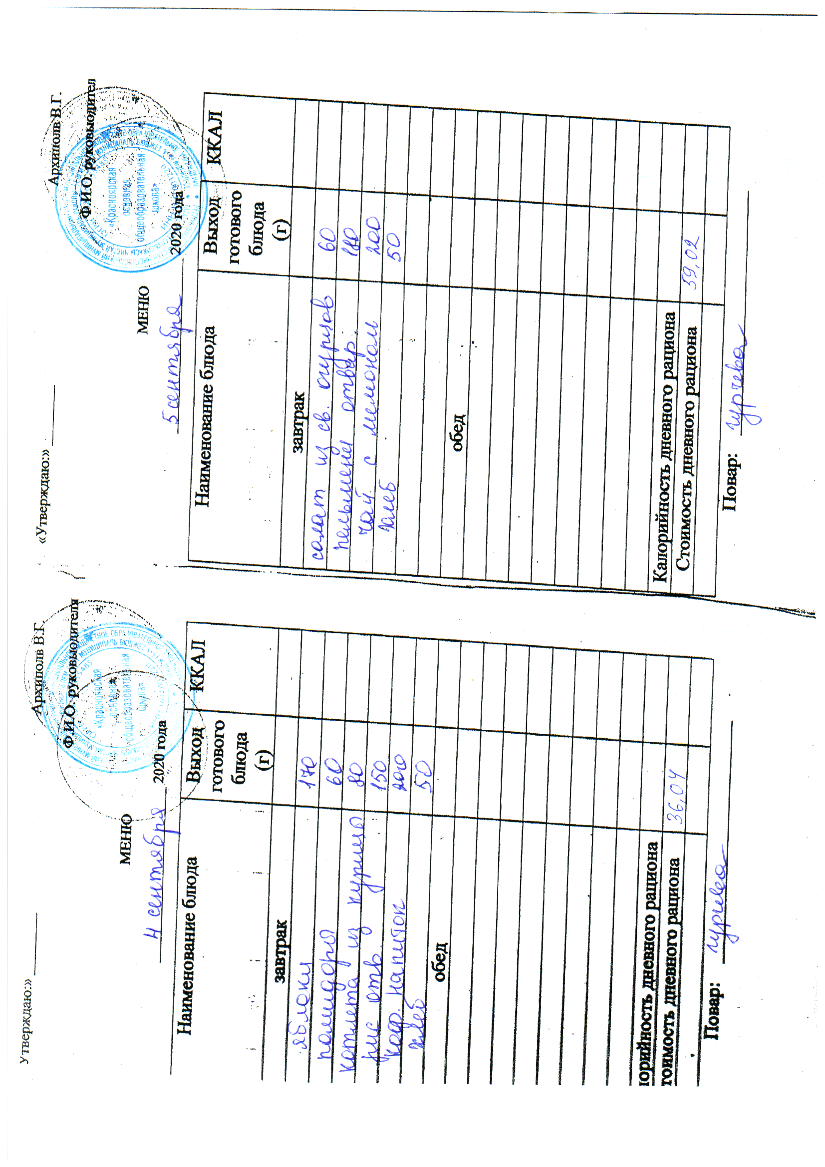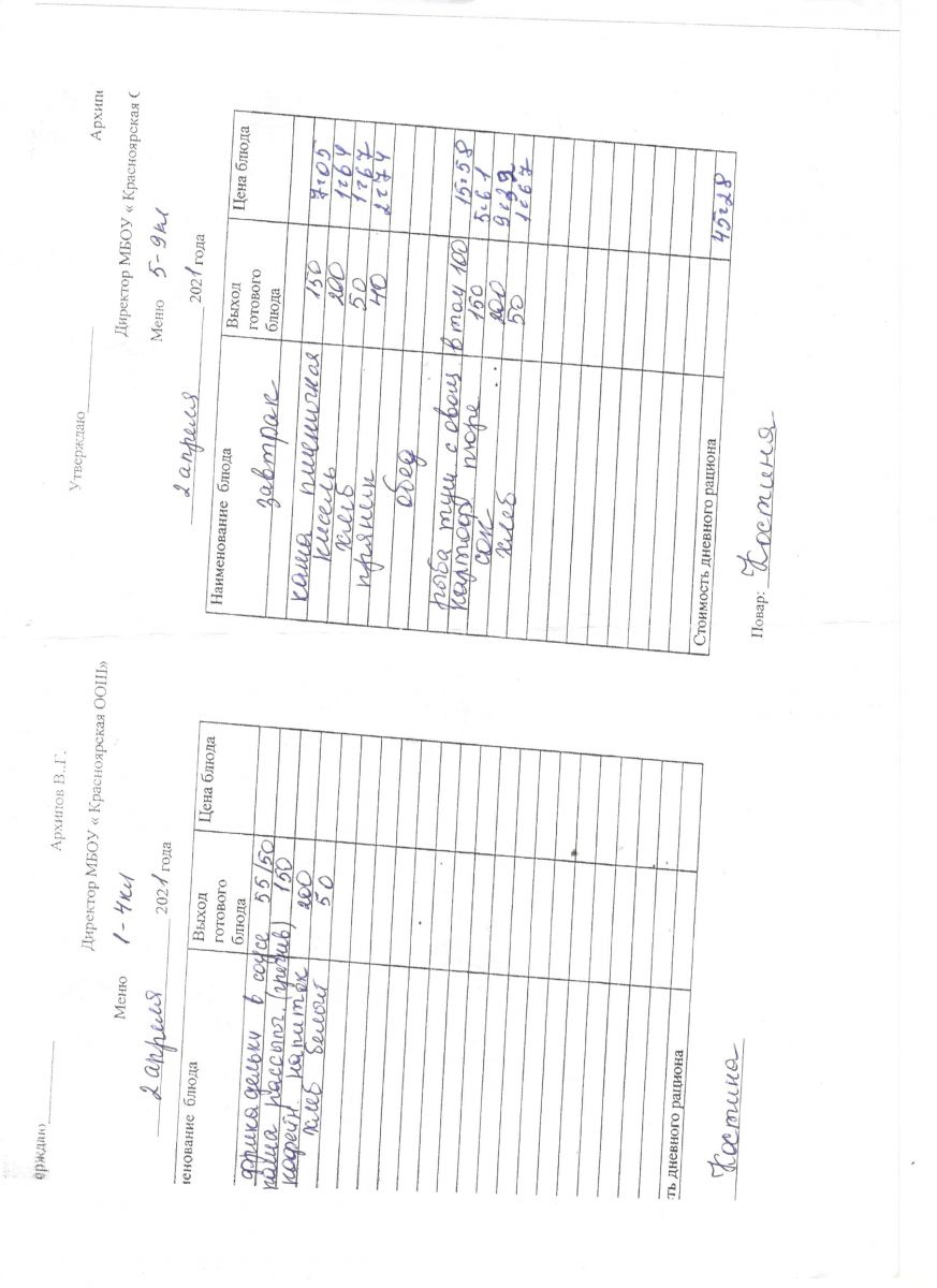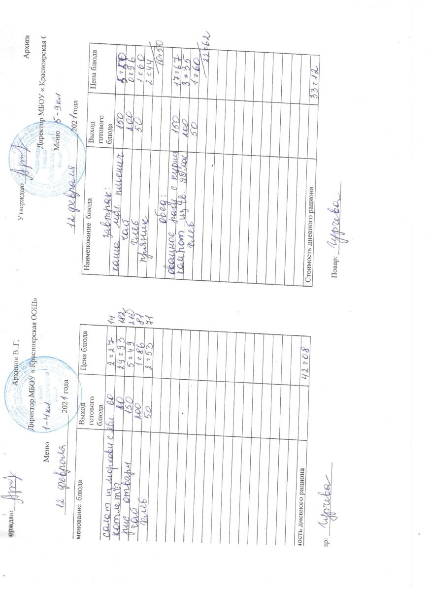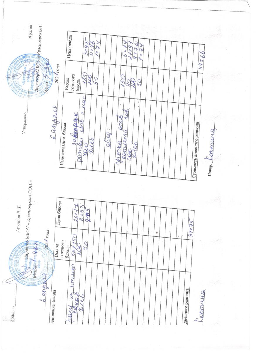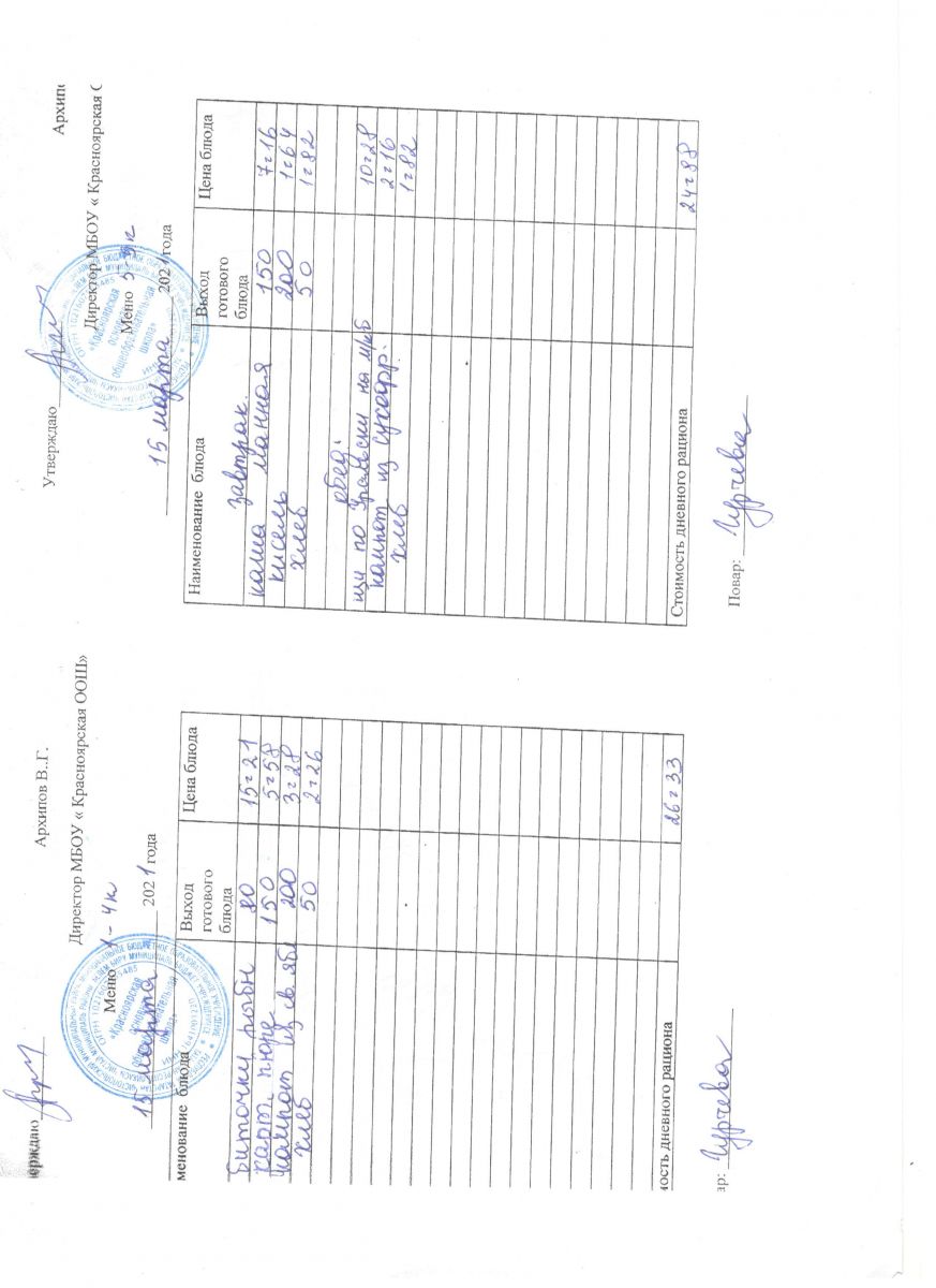 Меню учащихся 1 - 4 классов 1 неделя(зимний сезон) 2 неделя (зимний сезон)