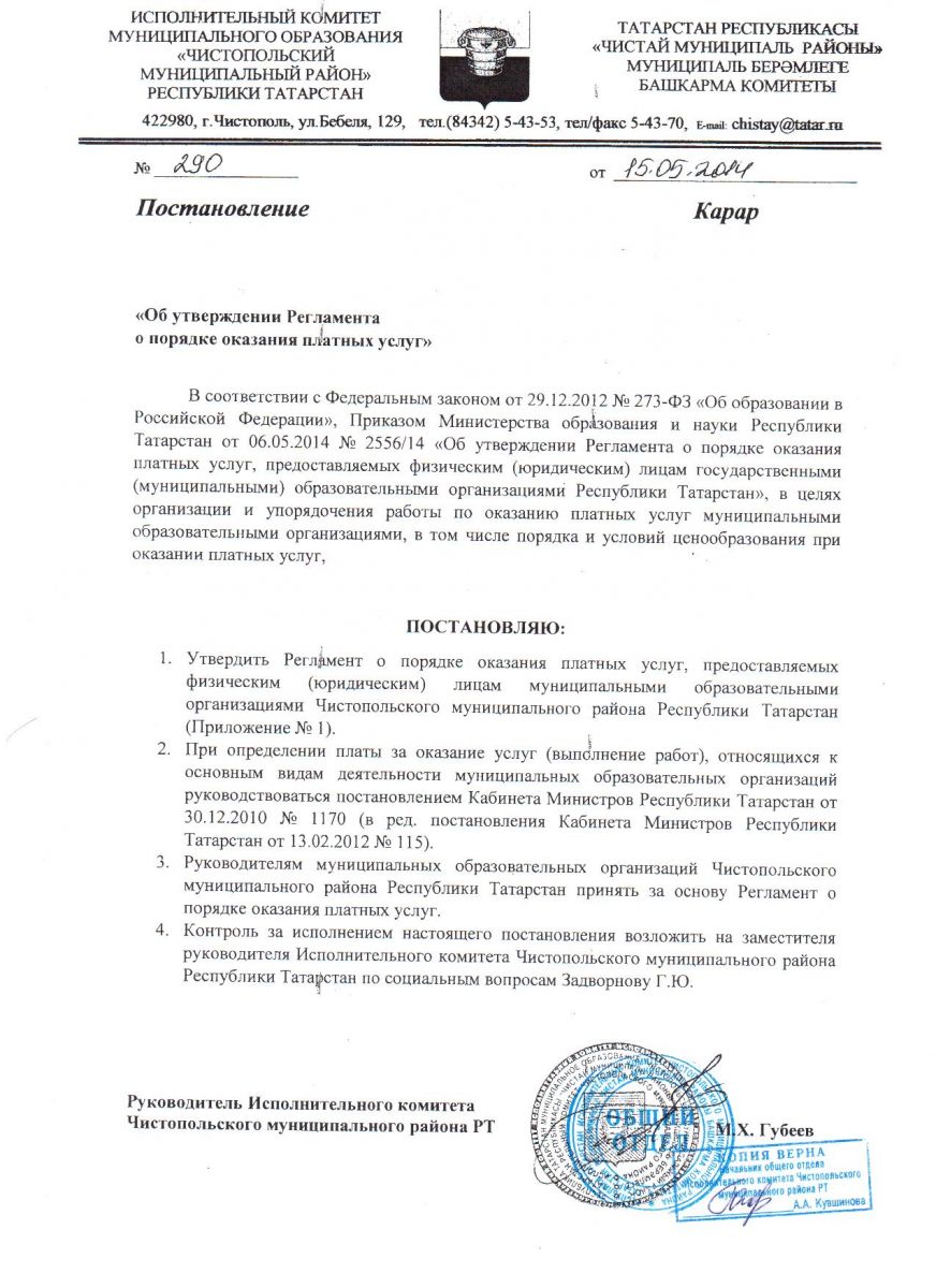 Приказ МО и Н РТ об утверждении регламента о порядке организации платных услуг