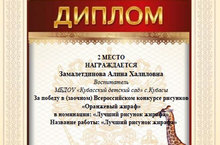 Наш воспитатель принял участие в Всероссийском конкурсе рисунков "Оранжевый жираф" занял 2 место.