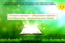 В рамках работы в рамках работы муниципального ресурсного центра «Чишмә» МБДОУ «Детский сад № 1» «Весёлая карусель» был организован конкурс методических разработок по ознакомлению дошкольников с национальными блюдами народов Поволжья «Тәмле» китап» - «Вкусная» книга» наш педагог Хатыпова А.М. приняла участие ."Чишмә» муниципаль ресурс үзәге эше кысаларында" Күңелле карусель» балалар бакчасы мәктәпкәчә яшьтәге балаларны «Тәмле» китап» - «тәмле» китап» Идел буе халыкларының милли ризыклары белән таныштыру буенча методик эшләнмәләр конкурсы оештырылды -