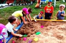 В летне-образовательный период наиболее любимая игра детей в летний период-строительство из песка. Игры с песком очень интересны и разнообразны. В играх-упражнениях с песком и другими сыпучими материалами активно участвуют руки ребенка, тем самым, осуществляя познание окружающего мира.Җәйге чорда балаларнын иң яраткан уеннарының берсе - комнан төзелешләр төзү уены. Ком белән уеннар бик кызыклы һәм төрле. Ком һәм башка таралучан материаллар белән уен-күнегүләрендә балаларның куллары актив катнашалар, шул рәвешле әйләнә-тирә мохитны өйрәнәләр. -