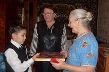 Учащиеся начальных классов, вместе с классными рукодителеми посетили Багаеву Евдокию Николаевну - Героя Социалистического труда. Они поздравили ее с праздником.