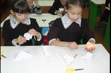 Учащиеся начальных классов изготовили поделки в подарок мамам и подарили во время классного часа.