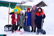 Учащиеся 7 класса провели акцию "Забота", по очистке снега у подшефных жителей села.